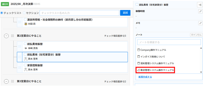2.別グループに作成されたタスク内チェックリストに紐づける
