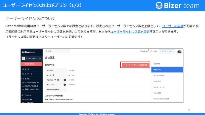 ユーザーライセンス数の変更方法、プランの種類(月間・年間払い)について - ユーザー管理